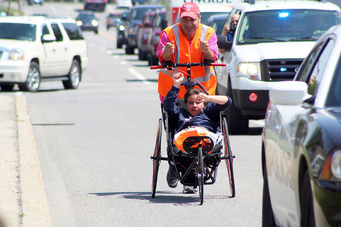Emma and Dan Perritano are from Erie, PA. They have been long distance walking and competing together for almost ten years. Since 2014, their journeys have taken them all over the country, including walks across the entire states of Colorado, Vermont, and Pennsylvania in Emma’s customized running chair. Emma had a cerebral hemorrhage shortly after birth. She has cerebral palsy, experiences seizures, is non-verbal, and has other developmental delays. All that aside, Emma is happy, communicative, and joyous. Emma lives with her parents and is an integral part of planning and executing their long-distance walks together. Dan is a retired NCAA Division III college soccer coach with over 600 career wins. He has coached both men and women and taken his teams on multiple international trips. His proudest accomplishment has been establishing a The Outreach Program in Soccer (TOPS) in Erie, PA. This program partners college students with individuals of all ages with disabilities to have fun playing soccer and reaching their physical potential. TOPS has run for over 20 years benefiting hundreds of participants. Together, Emma and Dan have laughed, suffered, cried, competed, and walked thousands of miles. Their story is compelling and has helped various nonprofit organizations raise thousands of dollars along the way. They look forward to sharing the lessons they have learned on the road with elementary and high school students through stories, music, pictures, and videos.